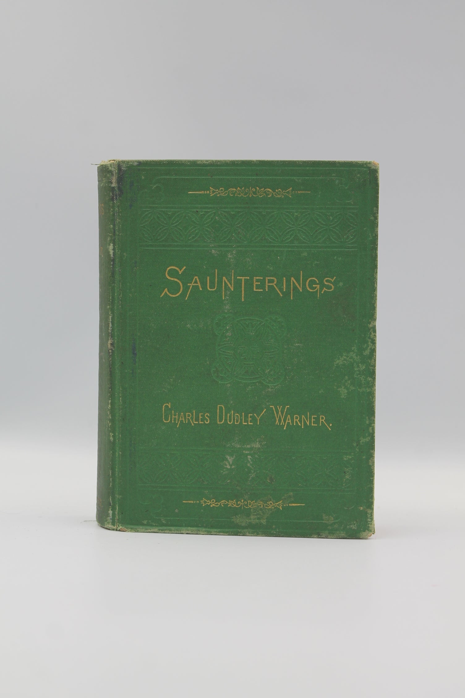 Warner wanders about Europe, including Paris, the Low Countries, Italy, and Bavaria. Embossed green cloth with gilt decoration and title on cover and spine. Square binding. Red stain to edges. Rubbing to spine edges. Clean interior. 289 pages with catalog at end of book. Bookseller's sticker on rear end page.